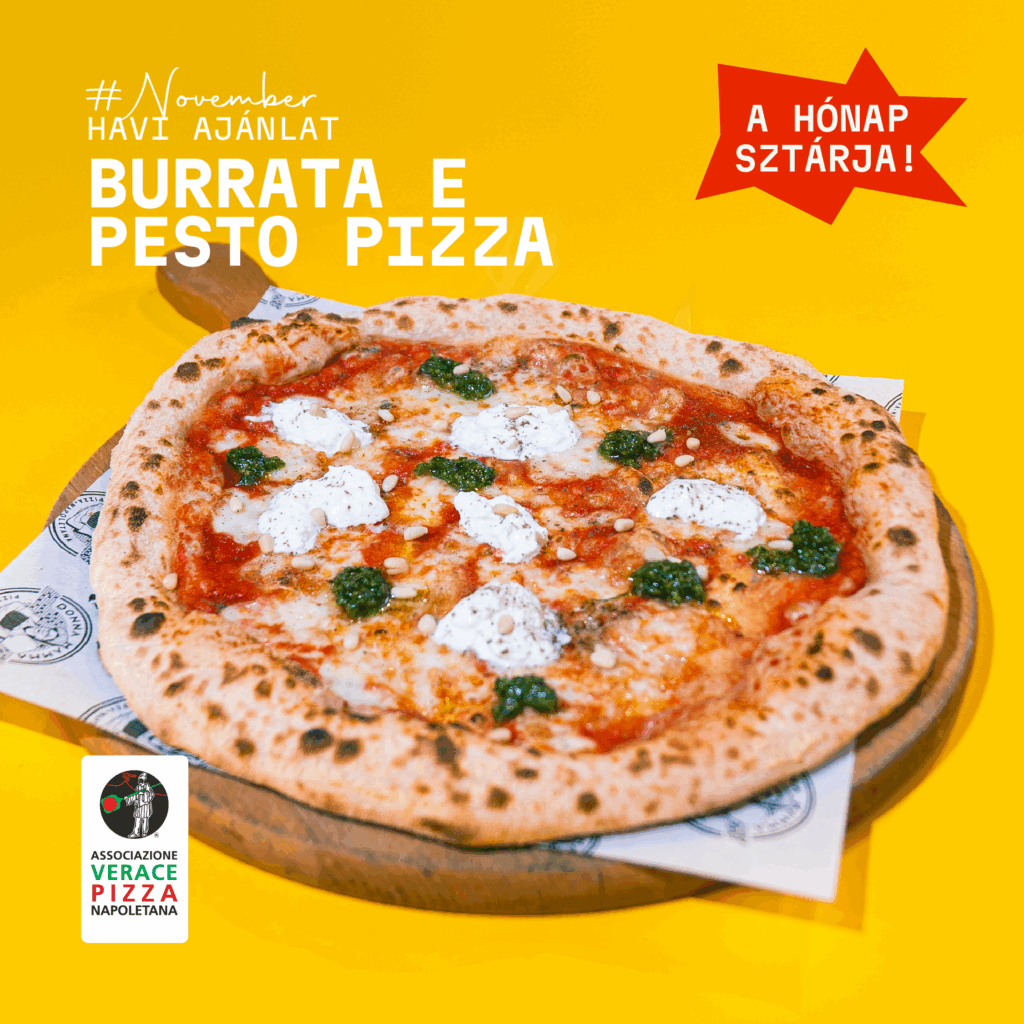 A krémes burrata és a friss pesztó találkozása egy tökéletes nápolyi alapon.